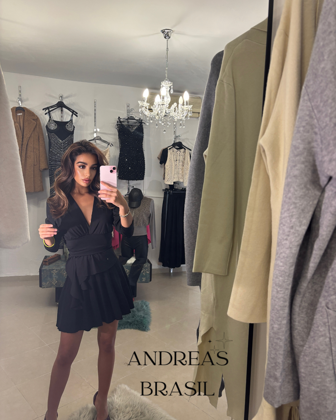Chaleco corto negro con diseño cruzado y lazo en la cintura. Su corte elegante realza la figura y aporta un toque sofisticado a cualquier look. Perfecto para combinar con falda o pantalón y crear un conjunto de impacto con esencia italiana.